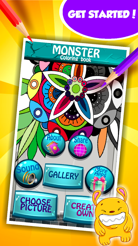 Escape the gloomy reality with the astonishing sketches presenting various creatures. They are known to produce fear but these ones do not. They are funny and that is why these popular monster coloring images are appropriate even for kids. Unlock your tablet and go to the choose picture page where you can select one of the many drawings and let your children play. This best educational game will improve their hand-eye coordination and develop their imagination. You can also work with them and you will feel how it slowly calms you down. All the tension will disappear while you fill the gaps of the sensational creature with pointed hat. Make sure to pay attention to even the tiniest details and to do that you can zoom in or out the picture. You can also listen to the cool music in the background and it will relax you even more. That is why the top Monster Coloring Book is also famous as stress-relieving. Share it with your friends so that they can too experience color therapy.