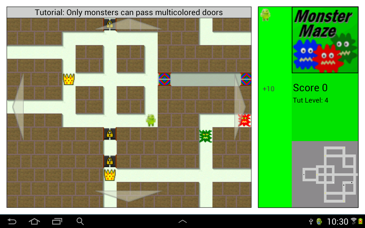 Find the keys to unlock doors and use them strategically to escape from monsters. Use the radar to help plan your escape. Entice the monsters to fall into traps but be careful not to fall into one yourself!