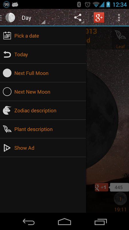 It also include an exposure calculator for photographing the Moon. It will give you the estimated shutter speed required based on your ISO, aperture, weather condition, moon location and phase. You can also use month view to see phases over the entire month and quickly move to specific day with taping it. This application also include some nice widgets to use at your home screen so that can always see the phase of the moon.