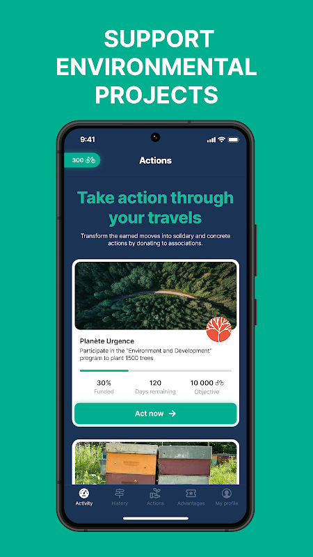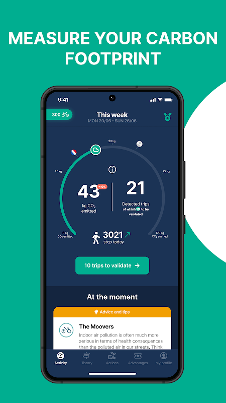 Moovance is the application that encourages you to move and follows you on all your trips. It allows you to measure your carbon footprint and helps you reduce it. Just by moving, you can finance ecological projects and enjoy exclusive advantages at our partners, or get money directly into your bank account!