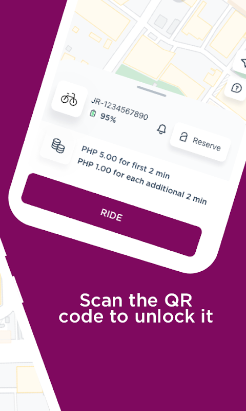 Scan the QR code on our ride locks for a seamless cashless transaction