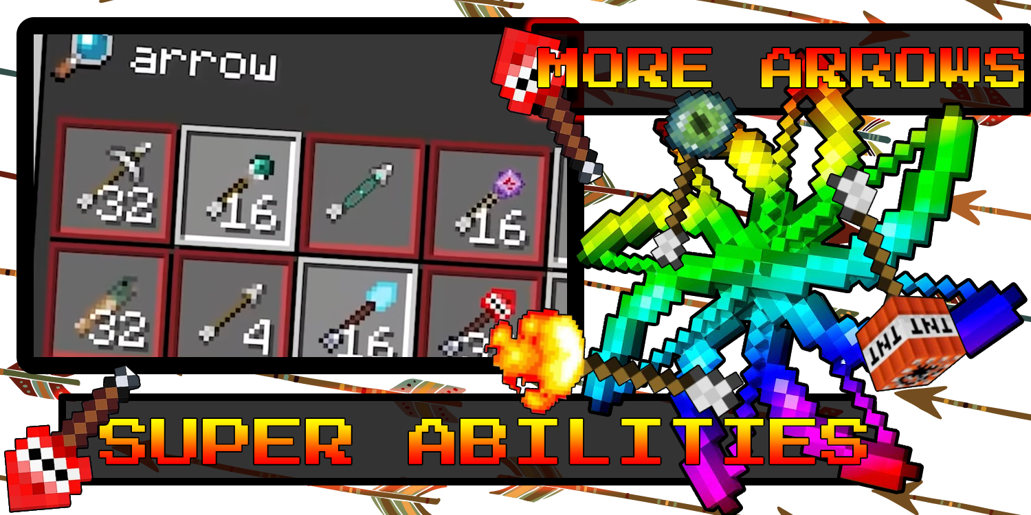An excellent opportunity to upgrade your hero. Your arsenal will be replenished with powerful weapons that endow the owner with superpowers. Craft new arrows that, after hitting the target, will lift the enemy into the sky and make him weightless and send him into space. You will also get the ability in one click, by charging your bow, to destroy a house or even an entire settlement, because your arrow is no longer just made of wood and iron, you need a TNT block to craft it. Your inventory will also contain dangerous items that can cause lightning and other natural disasters. Now, having gone to the lower world, you can kill the ender dragon and other monsters because your weapon has a lot of damage from a distance. Having a bow with arrows like this won't scare you at night. The tests will be not only in survival but also in crafting, because special arrows need to be crafted with the help of potions that give them luck or other effects. If you like to shoot from a bow then you can transform into a superhero green arrow. The arrows of course will not automatically aim at the target, but they will be able to slow down, apply poison to the enemy and even lift him up. The mod is perfect for both adults and children because you can expand the possibilities of the classic game and conquer the online world. Get a great bonus in competition with friends and just in survival. You will have magic weapons for battle royals in your inventory. On any map, you will have no equal in hunting or simply looking for adventure.