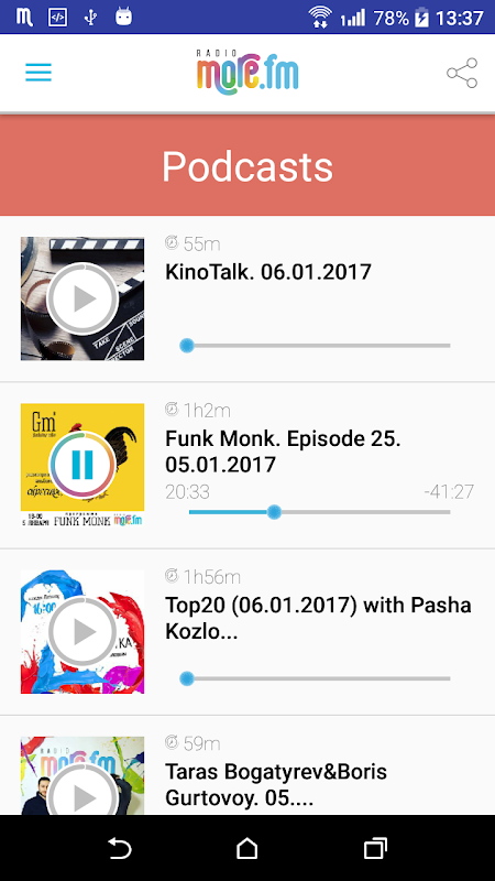 Download Radio MORE.FM app absolutely for free and you will be able to: