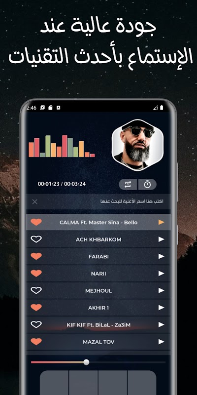 The Moro songs application without an Internet connection provides fans of the artist Moro with a unique and enjoyable experience to listen to his most beautiful songs at any time and in any place without the need for an Internet connection. The app features a large variety of Moro's songs, including his old and new classic albums and songs.