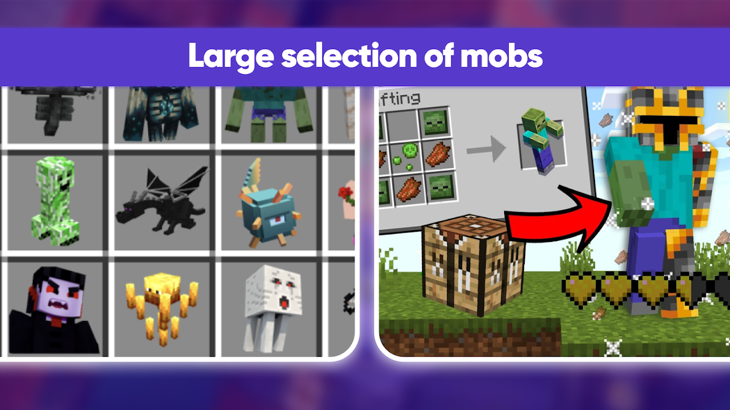 Now with addons in the universe will appear rare and unusual animals, including exotic species that inhabit the most remote and fantasy territories of games. App like Morph Mods for Minecraft will allow you to explore forests, deserts and oceans to get the appearance of a particular character. Morph into Mobs: Minecraft Mod and addons will maximize your gamer experience Bedrock, and after passing all the tests will give even more unforgettable feelings and valuable knowledge.