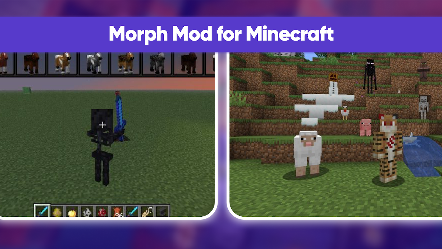 App by the name Morph Mod 2 for Minecraft PE has nothing to do with Mojang, so Morphing Addon for Minecraft Game is an unofficial addition to Mincraft.