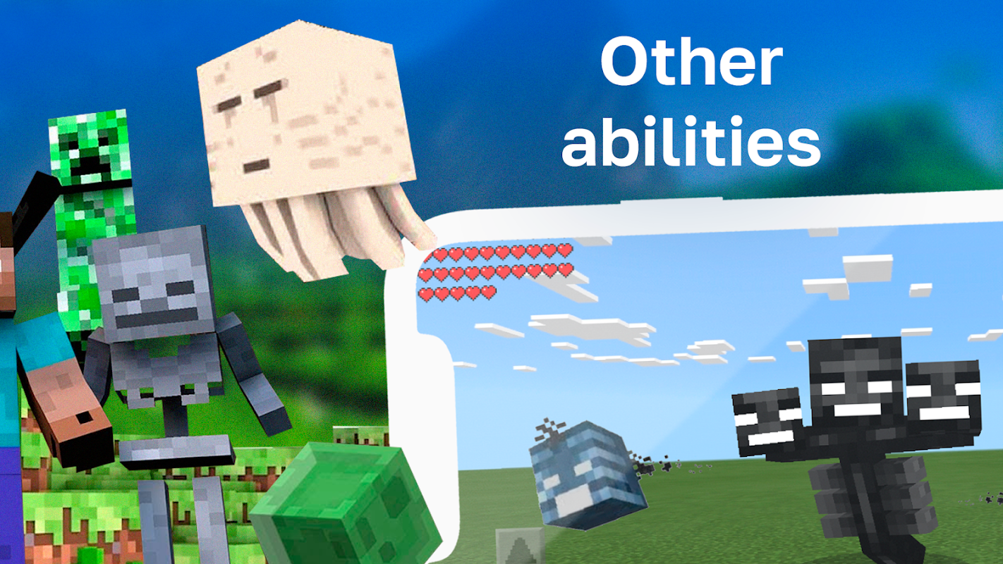 All mobs and animals have different abilities and properties, which, when transformed with the morphing mod transferred to the player. This can be both a plus and a minus of addons. For example, many mobs burn in the sun, but at the same time have a high level of damage, a large number of lives or a huge growth. And such a mob as a drowning man gives an extra ability to breathe underwater and swim fast in the sea. But the big advantage is that mobs do not attack their own kind. So with a mod transformation you'll be able to become any kind of monster and quickly get away from the attack and ensure your survival by transform and hide under a mask of mods.
