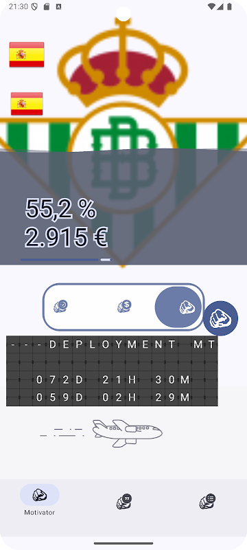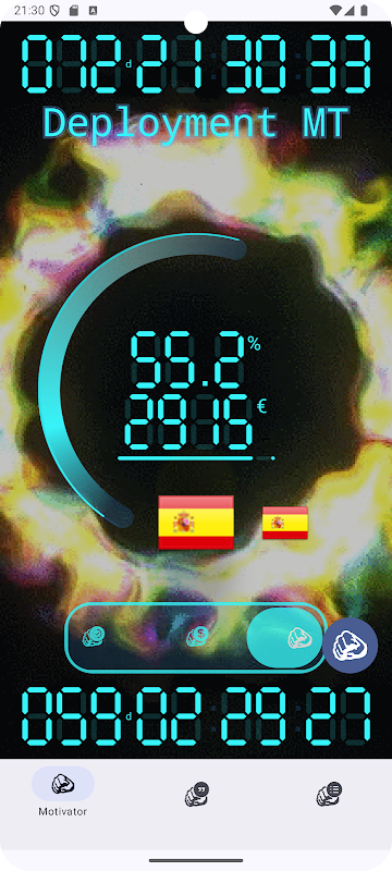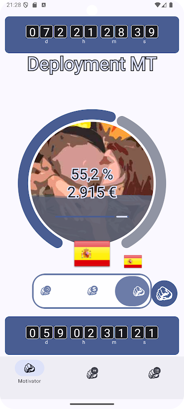 Motivator is an application where you can see the time you have left to the second and percentage to achieve your goal in addition to visualizing your remuneration up to the moment and remaining.