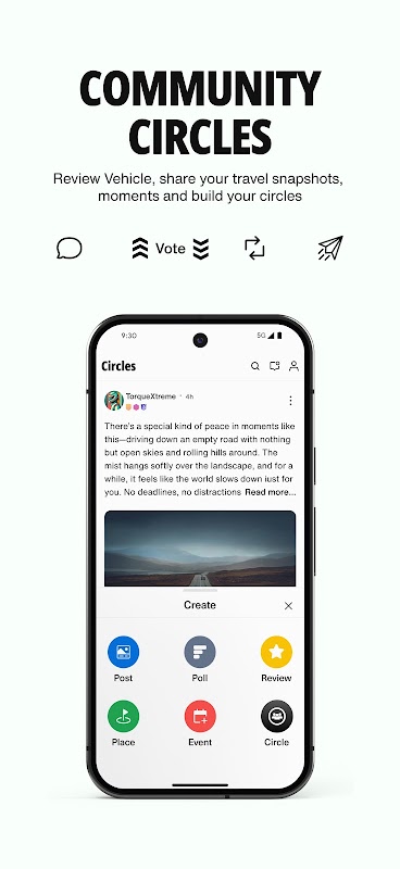 • Community circles where you can share your views, questions, pictures of your vehicles, your travels and much more