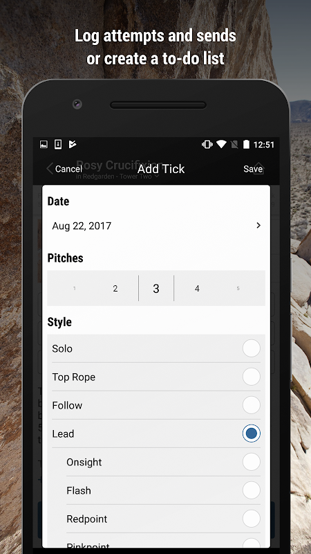 • Rate routes and photos, keep track of attempts & sends, or make a to-do list