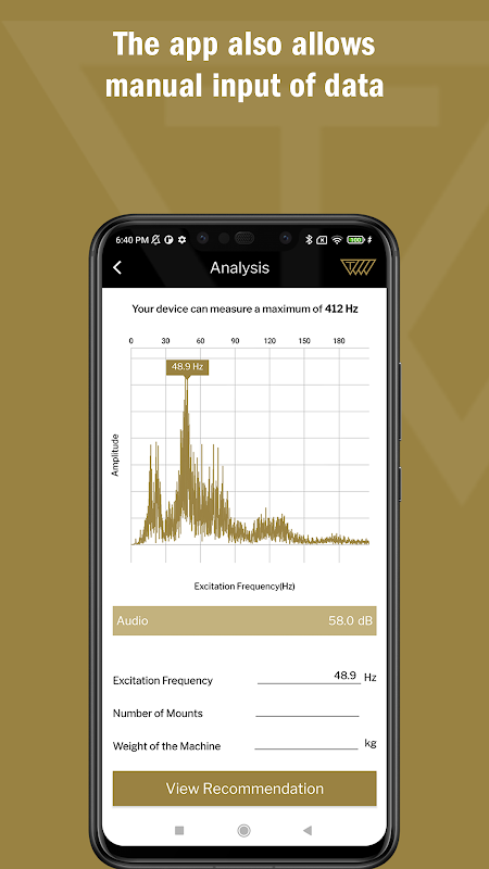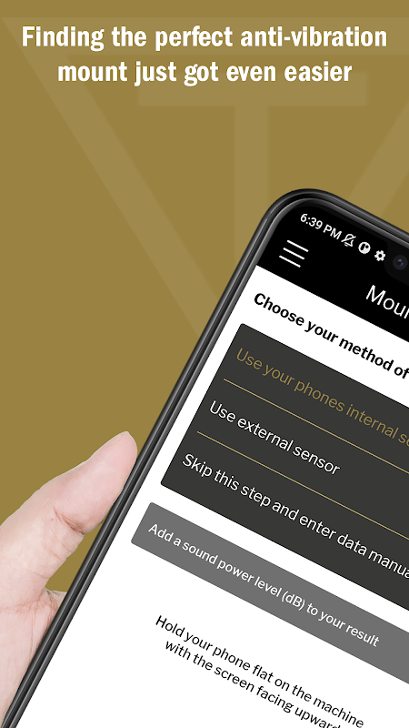 MountFinder Pro combines vibration and sound analyzer and mount selection technology to help quickly identify the best anti-vibration mount using just your mobile phone. MountFinder Pro uses the phones in-built accelerometer to directly measure your machines vibration levels. This information, along with the number of mounts required and machine weight, is cross references with our product database to quickly identify which mount is right for your application. For hard to reach applications, MountFinder Pro can connect to an optional Bluetooth measurement device to record equipment vibration levels and provide the recommended mount solutions. MountFinder Pro also allows for the manual input of data to allow recocomendation of the the perfect anti-vibration mount solution.