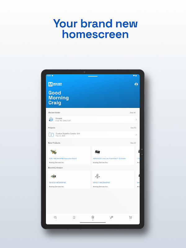 Use the app to access your My Mouser account to view order history, order details, and order status information. You can also bookmark products or add them to projects for quick access or to review offline. Always stay connected to Mouser and the newest products for your latest designs.