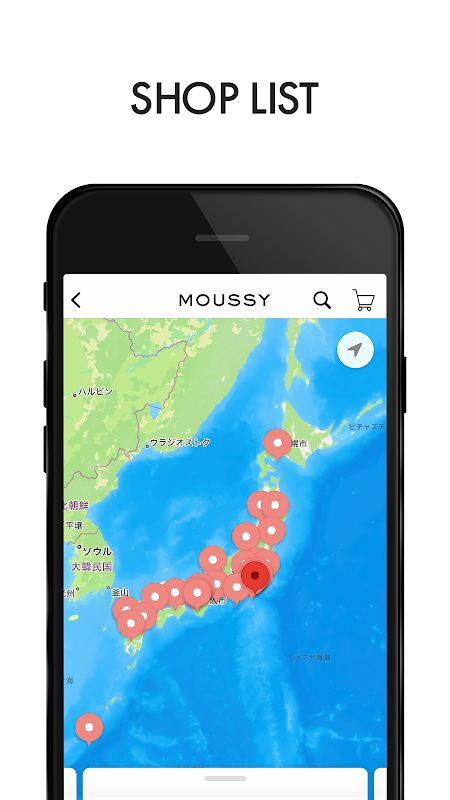 A convenient feature that allows you to check the MOUSSY STORE near you.