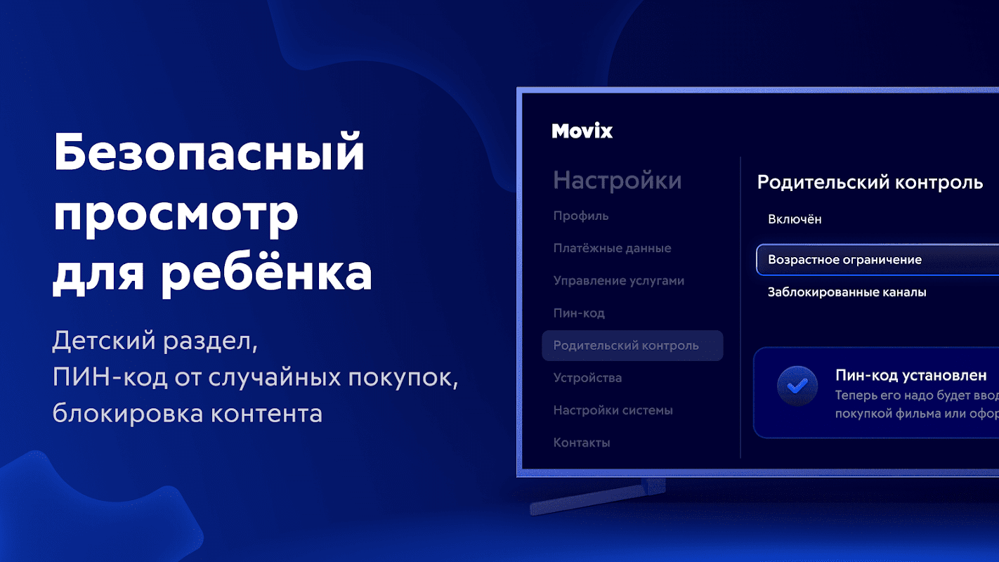 - Make purchases from a single account: connect subscriptions to online cinemas, additional TV channel packages, purchase films.