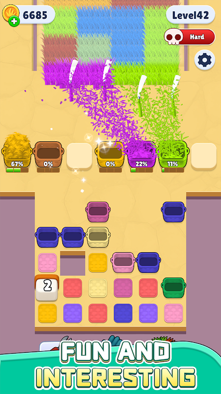 Mowing Craze - Sort Puzzle invites you to a calm and engaging puzzle adventure. Sort and stack colorful grass into organized hay bales through intuitive color-matching gameplay.