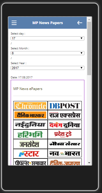 Easy and Fast way to read all Madhya Pradesh News Papers. Now you don't have to remember the websites of your daily news papers. The app includes most of the e-News papers available in Madhya Pradesh. So you can just browse and you are click away to read your favorite news paper!!! So get the app right now...
