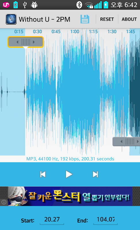 3. while playing, tap the word Start or End to quickly set the start and end markers to the current playback time.