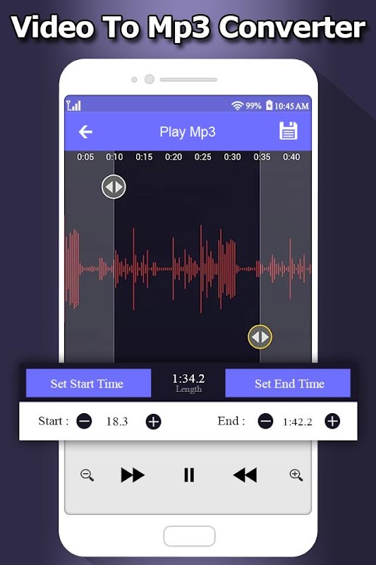MP3 converter (video to mp3)-converts all video files to audio files (MP3, AAC).MP3 Converter (video to MP3)-convert audio in one tap. MP3 Converter is also a ringtone maker and audio editor.With MP3 converter(video to mp3), you can converter, resize and trim your video and audio with various options.