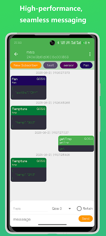 Real-time Publishing: Instantly send messages with topic auto-completion