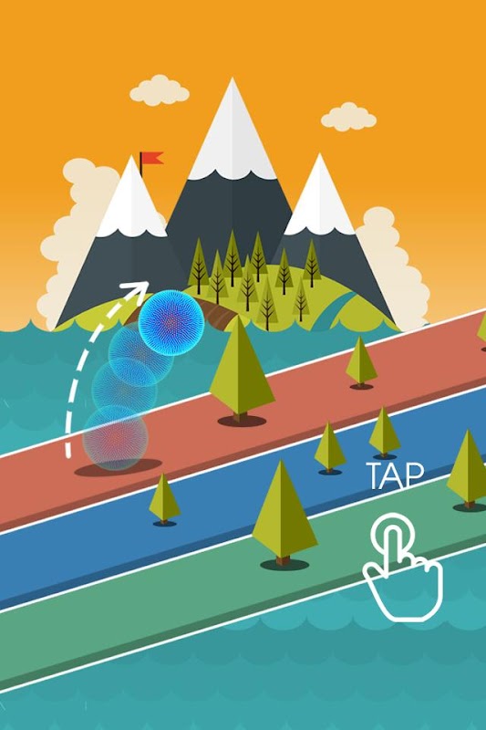 Just tap on the screen and up to three jumps before touhing again. You can swap the lane (triple lanes) to avoid obstacles by swipe up or down. Try not to hit the obstacles! Collect gems to unlock new balls, new themes.