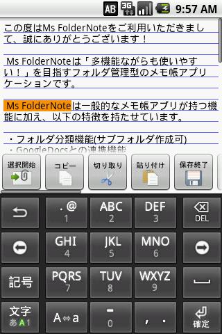 Ms FolderNote is the application note. The following functions are available.
