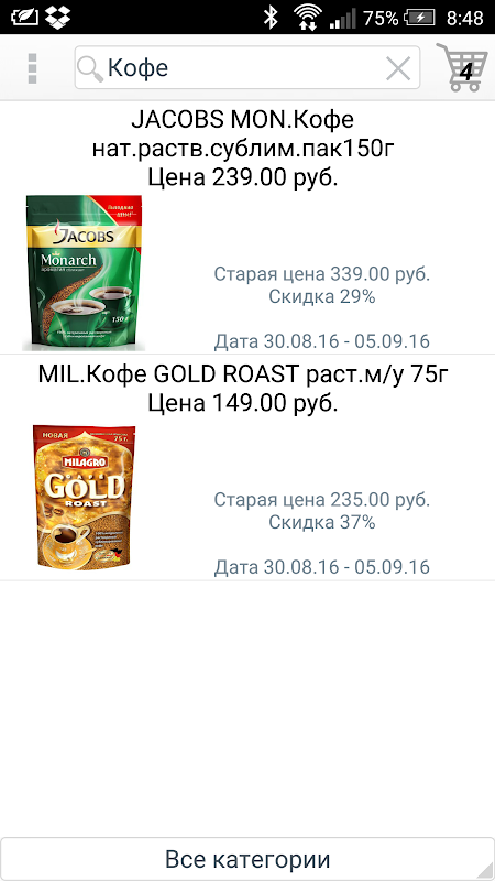 Produk terpilih boleh menjadi akhbar yang panjang untuk dimasukkan ke dalam bakul (senarai membeli-belah). Dalam senarai belanja, anda boleh tekan lama untuk menandakan barang seperti yang dibeli.