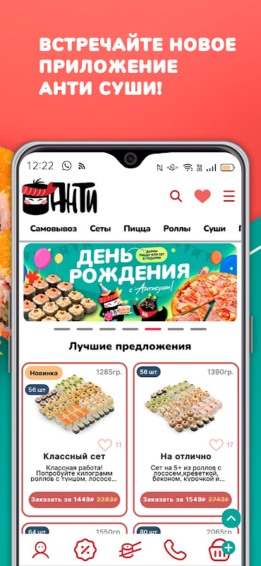 Jika anda ingin memesan sushi yang lazat di rumah atau sedang mencari penghantaran piza yang mudah dan cepat, jika anda memerlukan makan tengah hari panas ke pejabat, set roll murah atau set kombo untuk pesta yang menyeronokkan dengan rakan-rakan - semua ini boleh didapati dalam aplikasi Anti Sushi - Penghantaran Makanan, kami ada: