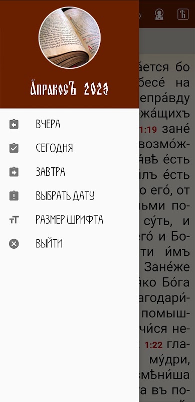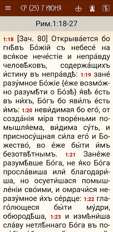 Aplikasi ini mengandungi bacaan Apostolik dan Injil yang dibaca di semua perkhidmatan gereja pada tahun 2023, mengikut piagam Gereja Ortodoks.
