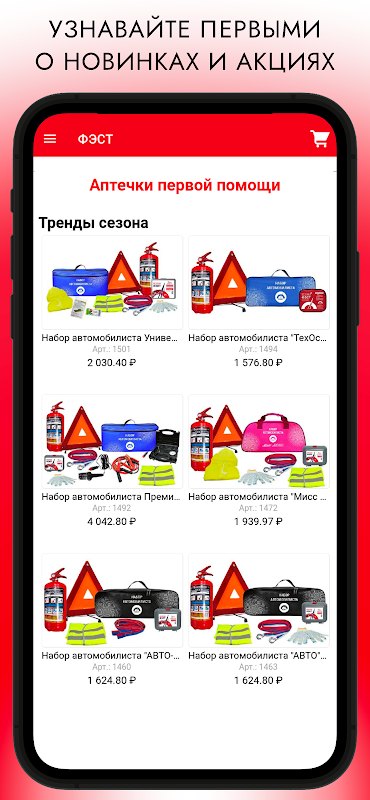 Уникальные скидки и предложения только для мобильного приложения. В приложении представлен расширенный ассортимент аптечек и сопутствующих товаров от производителя ФЭСТ.