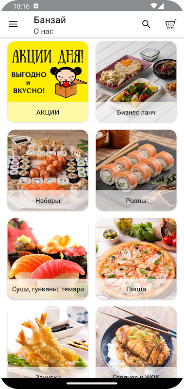 Perkhidmatan ini membolehkan anda membayar pesanan dengan mata dan menyimpan sejarah pesanan anda. Sebagai tambahan kepada bonus, kami mempunyai pelbagai promosi dan diskaun (diskaun 15% pada menu dari 10.00 hingga 16.00, diskaun 15% untuk hari lahir) Anda boleh mendapatkan lebih banyak promosi dan diskaun dalam aplikasi BANZAI kami