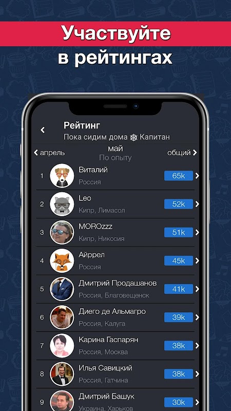 Anda akan dapat menilai pencapaian anda di bandar, negara, seluruh dunia, dan, tentu saja, di antara rakan anda, mendapat gelaran pemain terbaik dalam satu atau beberapa kategori dan pengiktirafan sejagat.
