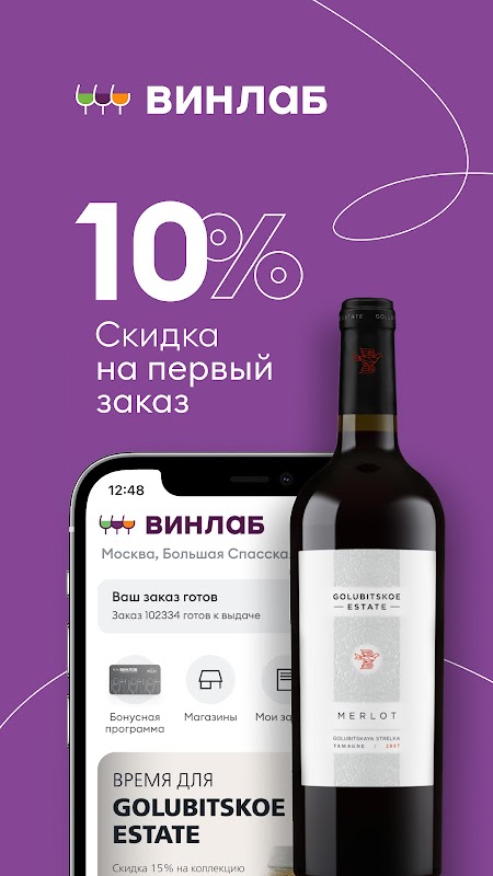 Vinlab - pasar raya minuman: carian mudah, potongan 10% untuk pesanan pertama.