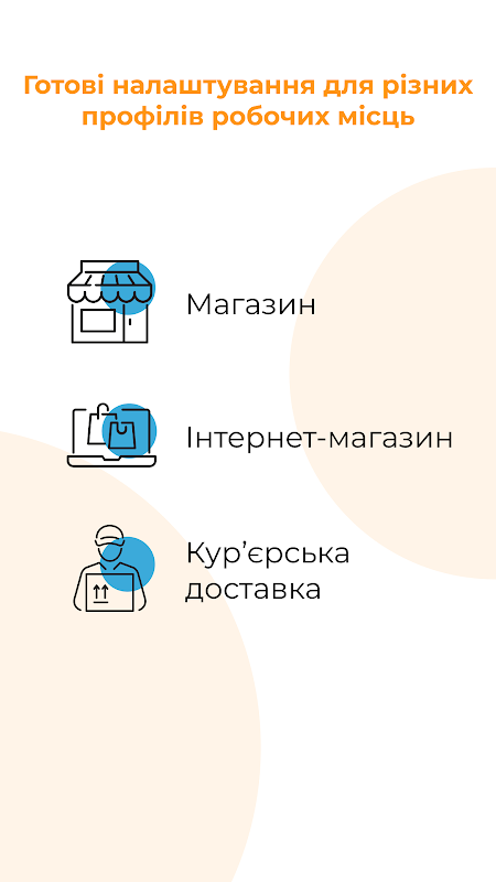 🔸Профілі робочих місць: магазин, інтернет-магазин, кур'єрська доставка.