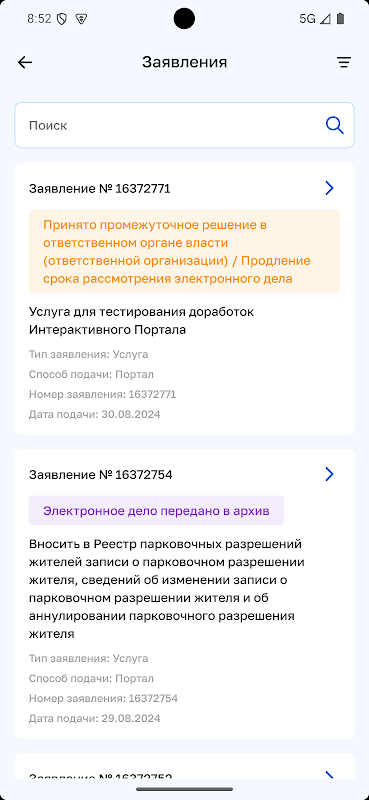 • menyemak status permohonan (permohonan elektronik, permohonan) yang dikemukakan melalui Portal perkhidmatan negeri dan perbandaran St. Petersburg gu.spb.ru dan MFC;
