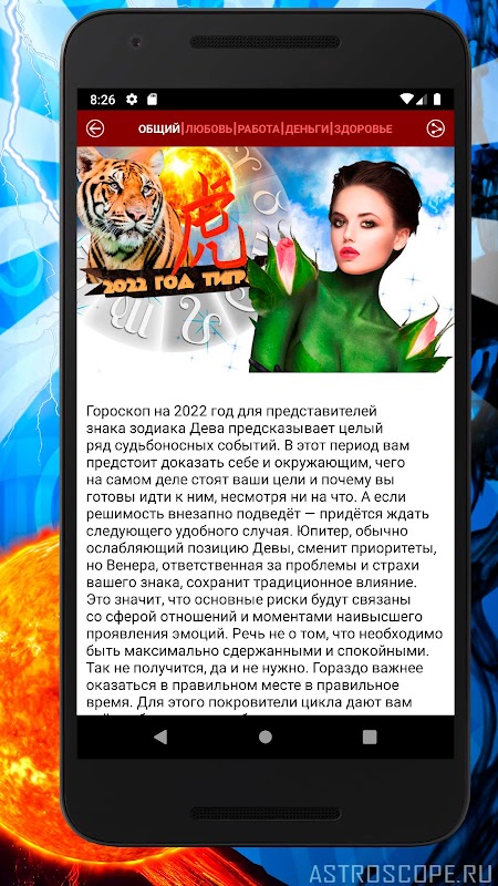 Aplikasi mudah alih Virgo juga akan menemui horoskop 2022, yang popular pada setiap malam tahun baru. Tidak ada yang menghargai masa peribadi setinggi Virgo pragmatik, yang bermaksud bahawa anda berminat untuk mengkaji ramalan jangka panjang dari ahli astrologi terkenal . Mengetahui ramalan tahunan anda, anda sendiri akan menentukan aspek kehidupan yang mana anda harus memfokuskan maksimum kekuatan dan tenaga anda.