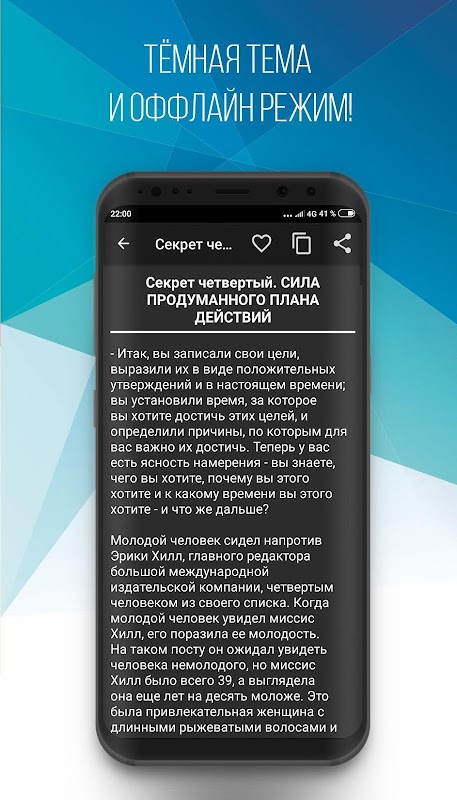• Возможность настройки приложения: изменение размер шрифта и ночной режим;