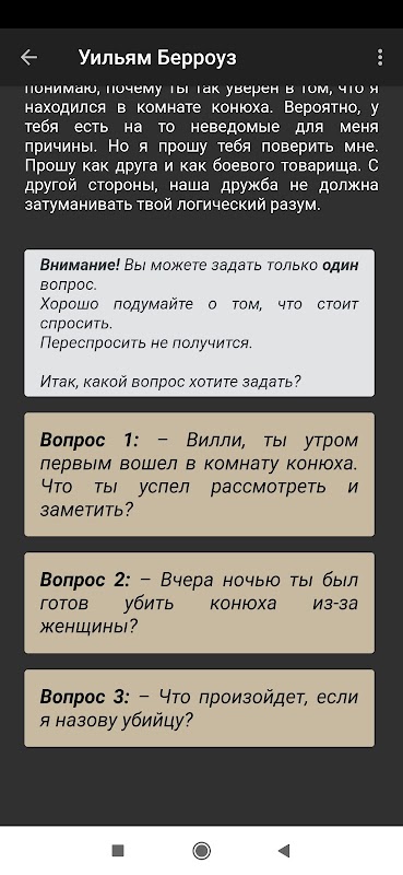 Ini adalah permainan detektif interaktif berasaskan teks "Murder at Burroughs Manor". Dalam permainan ini, anda perlu: