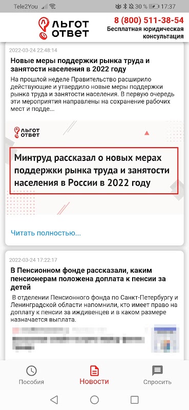 Bahagian "berita" mengandungi penerbitan yang sentiasa terkini mengenai langkah sokongan sosial (faedah, faedah, pencen, cara memohon dan menerima, pembayaran sosial, pampasan yang perlu dibayar).
