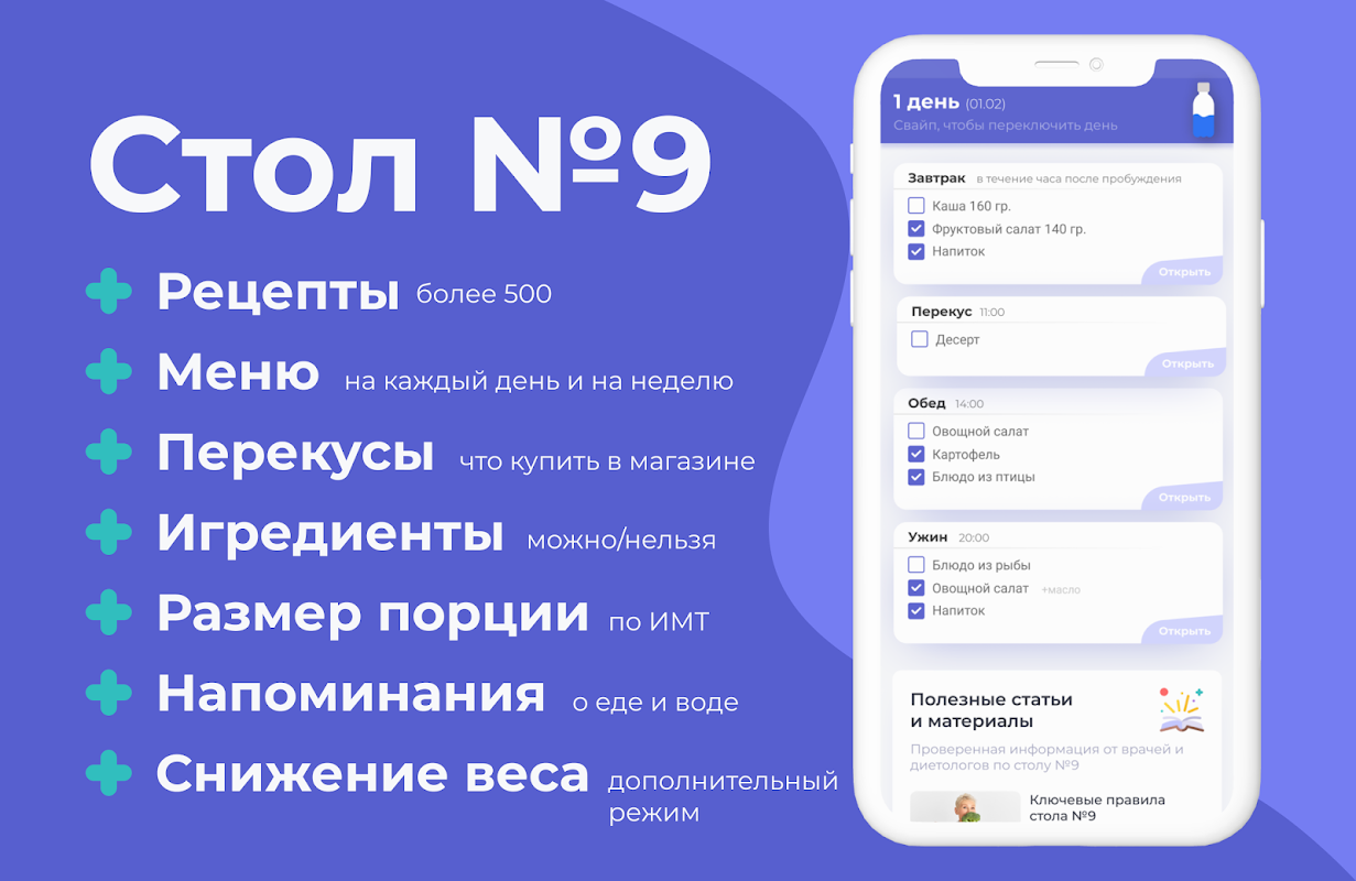 Jadual 9 dan diet untuk diabetes termasuk senarai terhad makanan yang dibenarkan untuk dimakan, yang merumitkan pilihan makanan. Aplikasi menyelesaikan masalah ini: ia hanya mengandungi resipi moden, kebanyakannya sangat mudah untuk disediakan. Juga dalam aplikasi terdapat senarai makanan "cepat" yang boleh anda makan dengan segera, atau cepat panaskan semula dalam dandang berganda.