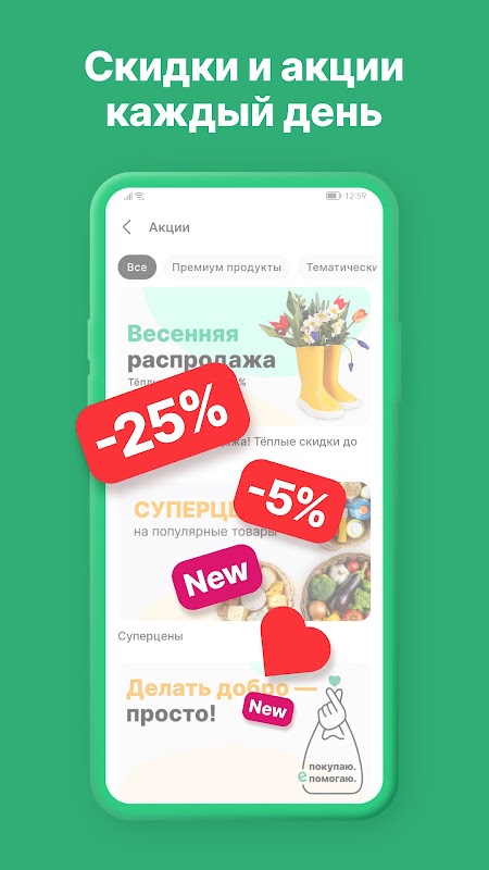 Dalam aplikasi anda akan menemui pilihan istimewa: produk tanpa gula tambahan, bebas laktosa, produk untuk vegetarian, serta artikel berguna tentang pemakanan yang betul.