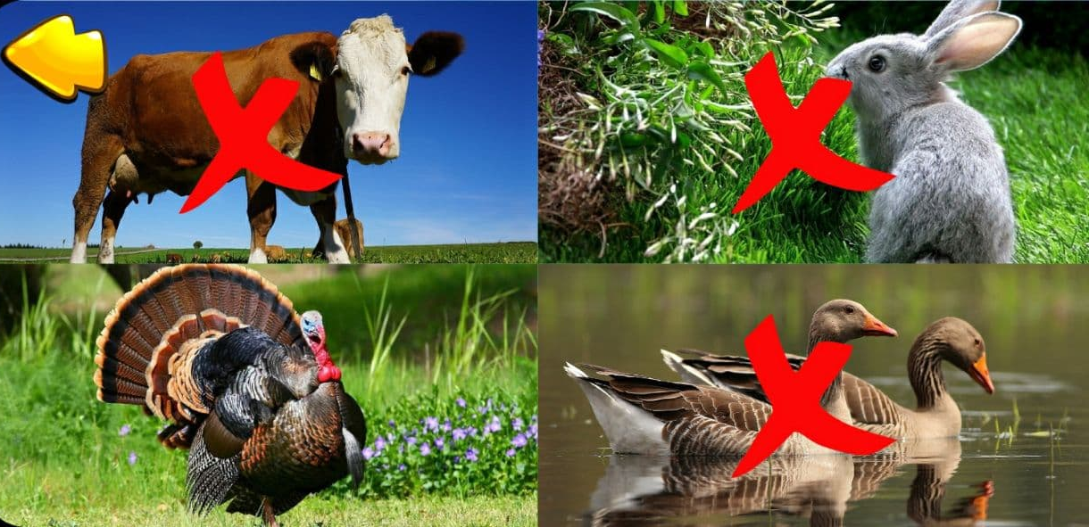 - haiwan peliharaan (kucing, anjing, lembu, ayam jantan, dll.)