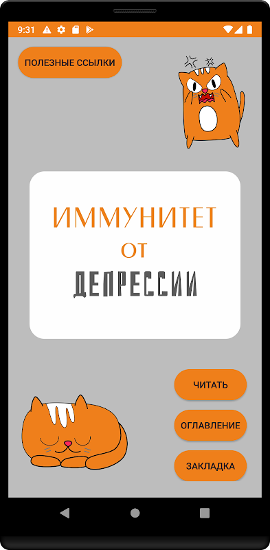 Dalam aplikasi anda akan mendapat akses kepada buku Sofia "Kekebalan daripada Kemurungan". Manual ini pendek dan boleh dibaca dengan cepat.