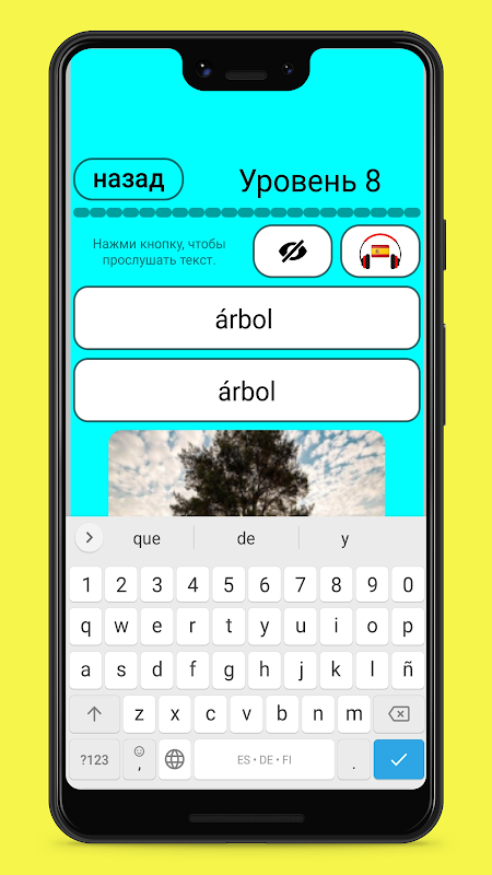 Jika anda tidak mempunyai main balik bunyi - pastikan anda telah memasang Perkhidmatan Pertuturan daripada Google dalam pensintesis pertuturan anda (Klik Tetapan / dalam bar carian masukkan Sintesis Pertuturan / Pensintesis lalai hendaklah Perkhidmatan Pertuturan daripada Google, jika tidak, pasang Pertuturan Perkhidmatan daripada Google , kemudian klik pada gear, pastikan bahawa ia tidak sepadan dengan sekatan penggunaan Perkhidmatan Pertuturan Google, log masuk semula ke aplikasi dan cuba mainkan bunyi sekali lagi, semuanya akan berfungsi.