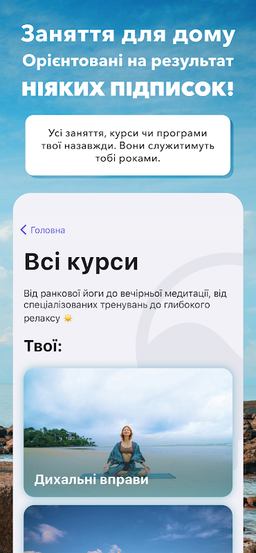 Permohonan kami akan membuka kepada anda dunia yoga dan kecergasan, di mana anda pasti akan menemui sesuatu untuk diri anda sendiri - daripada latihan yoga yang santai kepada latihan kecergasan yang bertenaga.