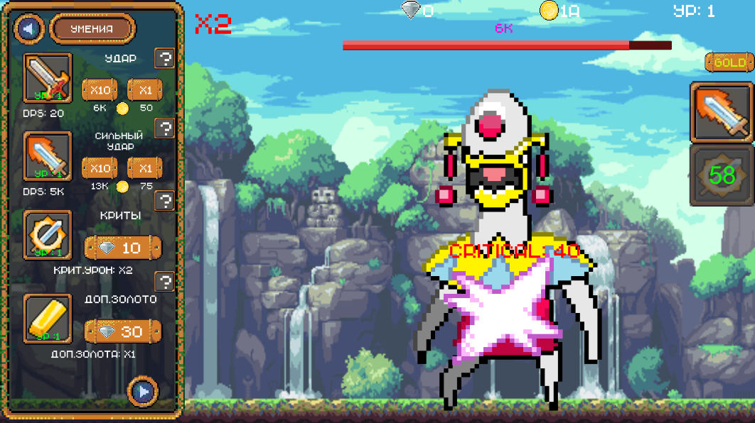 Simple clicker where you need to improve the warriors and defeat monsters.