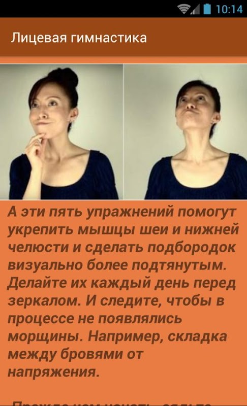 В приложений описаны причины появления второго подбородка, профилактика этого косметического дефекта, а также способы от его избавления.