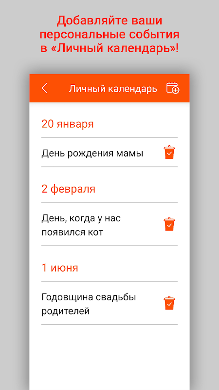 📅 Dunia penuh dengan acara menarik: hari cuti dan nama, kalendar rakyat dan hari lunar, acara unik dan tonggak tahunan. Kesemuanya dikumpulkan dalam aplikasi percuma "Kalendar acara dari Calend.ru" .