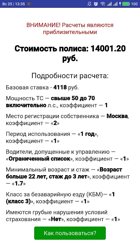 Чтобы рассчитать стоимость ОСАГО, заполните все поля до момента, когда кнопка "Рассчитать стоимость" не станет зеленой. Как только она сменила цвет, нажимайте на нее и получите полный результат расчета.