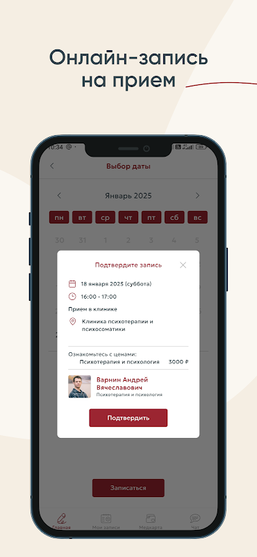 Pembantu yang mudah untuk membuat temu janji, menerima maklumat terkini tentang perkhidmatan perubatan dan berkomunikasi dengan pakar di Klinik Psikoterapi dan Psikosomatik.