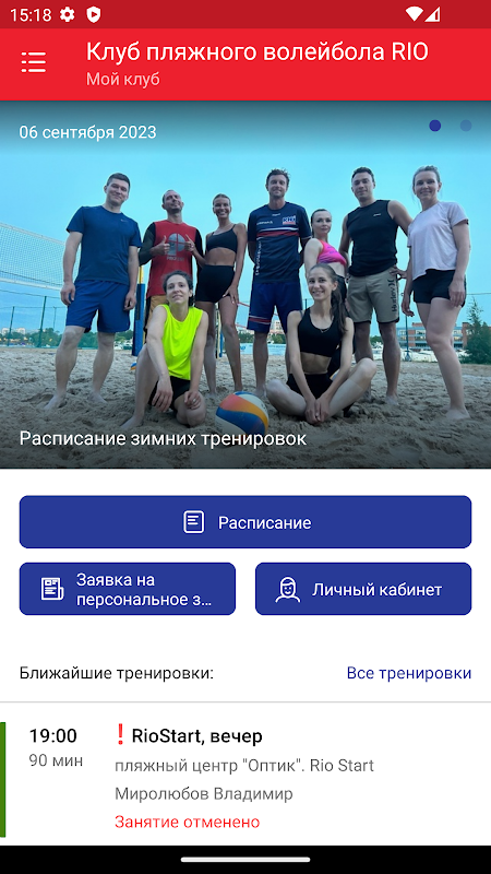 Kelab bola tampar pantai RIO telah diwujudkan pada tahun 2014. Jurulatih kelab adalah juara kebangsaan, peserta dan pemenang kejohanan paling berprestij Jelajah Dunia FIVB. Aktiviti utama kelab ini adalah mengajar bola tampar pantai kepada orang dewasa dan kanak-kanak dari pelbagai peringkat daripada pemula hingga profesional. Matlamat kami ialah pembangunan sukan anda dan keputusan yang tinggi dalam pertandingan. Aplikasi ini membolehkan anda mendaftar untuk latihan kumpulan dan individu, menerima maklumat dengan segera tentang perubahan jadual, dan mengikuti berita dan tawaran istimewa Kelab.